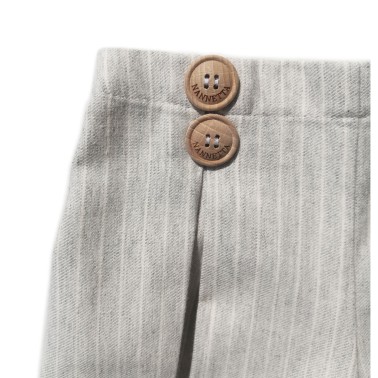 Le bermuda Hibiscus habille votre enfant dans un tissu en coton bio rayé bleu gris et ivoire. Un élastique ressert la taille dans le dos et autour des genoux pour plus de confort. Des boutons en bois gravés décorent le devant, et deux plis creux donnent de l'aisance au tour de hanches.