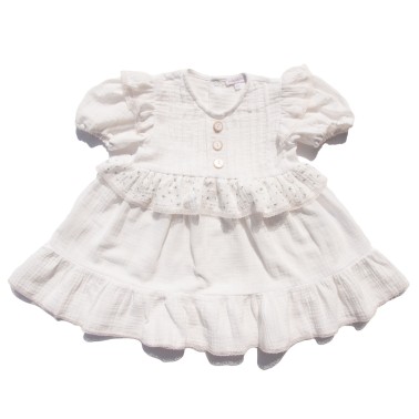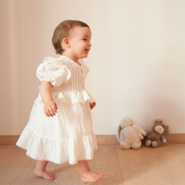 Realizzato in garza di cotone biologico, l'abito Belle-de-jour veste la vostra bambina con eleganza e morbidezza.